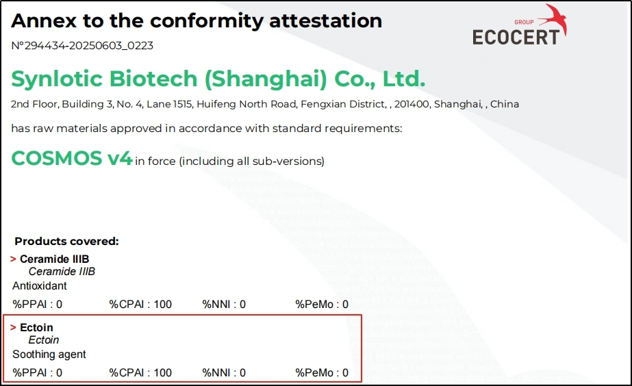 Недавно је Иикедуоиин који производи Схангхаи Иунлуо добио природни сертификат ЕУ ЦОСМОС који је доделио ЕЦОЦЕРТ у Француској.